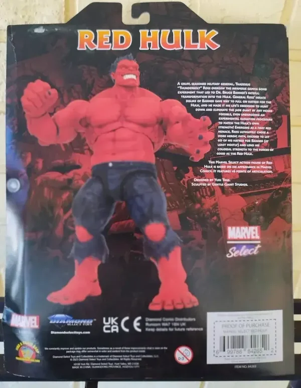 The "Red Hulk Diamond Select" is an action figure featuring the character Red Hulk, manufactured by Diamond Select. This collectible item is part of the Action Figures category in the Toys & Hobbies section, appealing to fans and collectors of comic book characters. With detailed craftsmanship and design, this figure brings the powerful and iconic Red Hulk character to life, offering a unique addition to any action figure collection.