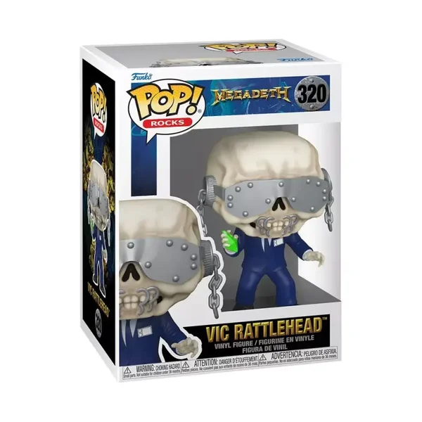 Vic Rattlehead, mascot of American thrash metal band, Megadeth, is here to take the stage and shake up your music collection! This Megadeath Vic Rattlehead Pop! Vinyl Figure measures approximately 3 3/4-inches tall. Comes packaged in a window display box. Rock on! Ages 3 and up.