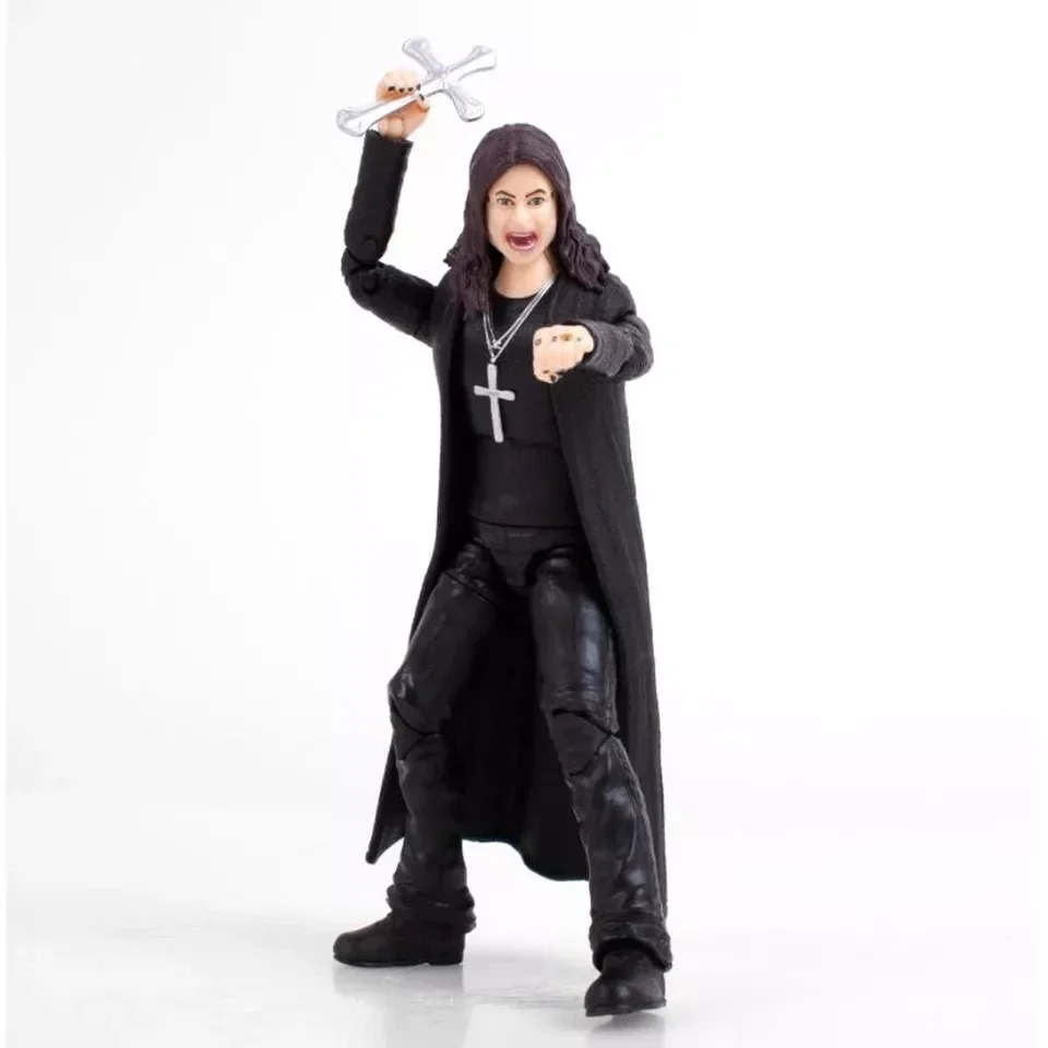 The Ozzy Osbourne BST AXN 5-Inch Action Figure is hyper-poseable with up to 31 points of articulation using a modern armature system which brings the figure closer to life! With killer paint details, super character likeness, interchangeable hands, multiple accessories, and great sculpt details, this figure is a must have for Ozzy fans! The rocker action figure comes packaged in a window box with interchangeable set of hands, a silver cross, and a microphone stand. Ages 8 and up.