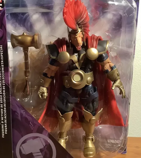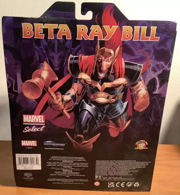 Beta Ray Bill has arrived, with his hammer Stormbreaker! Standing approximately 8 1/2-inches tall with crest, Bill wears his outfit from his 2021 mini-series, and includes his hammer and a spinning version of the same hammer. Featuring 16 points of articulation and detailed paint applications, it comes packaged in display-ready Select figure packaging. For ages 8 and up.