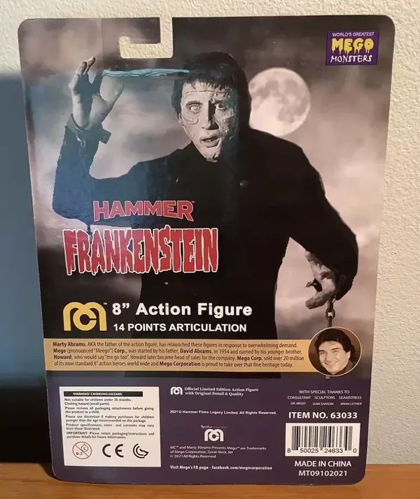Show off your fandom for Frankenstein with this Frankenstein Monster (Hammer) Mego 8-Inch Action Figure! Ages 17 & up .