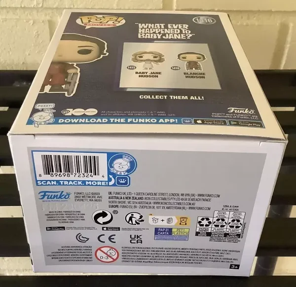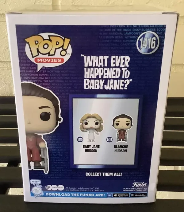 “You mean all this time we could’ve been friends?” Blanche Hudson is plotting her next move as she seeks refuge in your Funko Pop! collection. Bring this infamous collectible into your care to celebrate the cult classic film, Whatever Happened to Baby Jane?, as part of Warner Bros. 100th Anniversary. This What Ever Happened to Baby Jane? Blanche Hudson Funko Pop! Vinyl Figure #1416 measures approximately 3 3/4-inches tall. Comes packaged in a window display box.