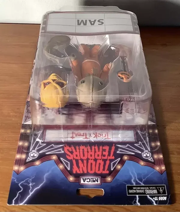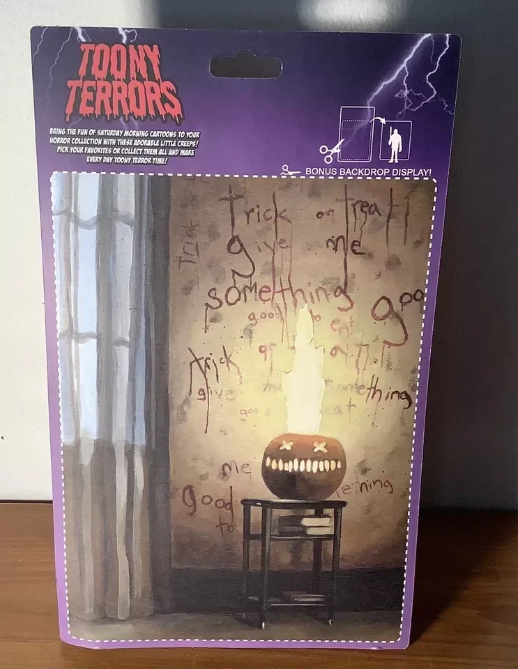 Reimagine the fun of Saturday morning cartoons with this horror collection featuring adorable but creepy Toon Terrors action figures! Standing approximately 6-inches tall, the assortment includes Beetlejuice (Beetlejuice), Victor Crowley (Hatchet) with axe accessory, Regan (The Exorcist) with interchangeable head, and Sam (Trick r Treat). Each figure comes individually packaged in blister-card packaging.