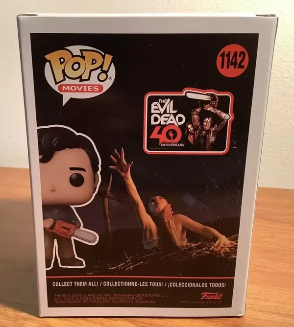 This Evil Dead Ash 40th Anniversary Pop! Vinyl Figure measures approximately 3 3/4-inches tall. Comes packaged in a window display box.