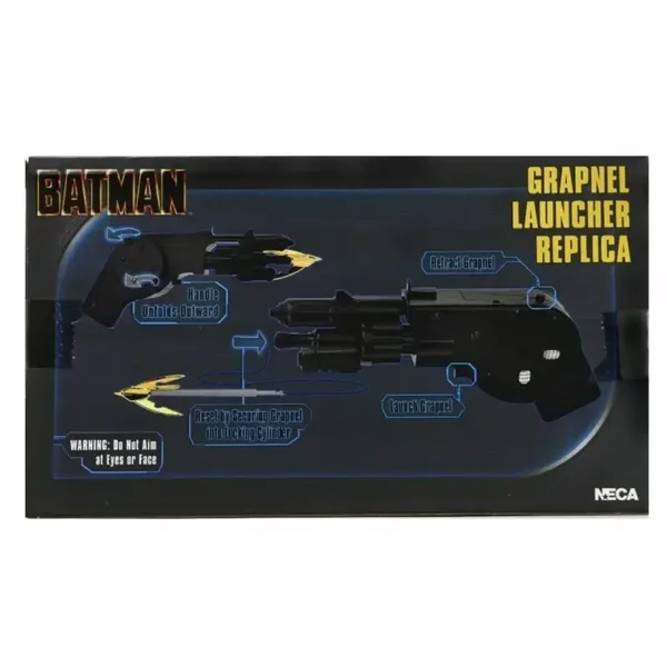 From the 1989 movie that defined Batman for the modern generation! This full-size replica of Batman's signature gadget, the Grapnel Launcher, is over 7-inches in length, with a screen-accurate foldable handle, grapnel hook attachment and a motorized spool that retracts the rope and hook after firing. Uses 2x "LR1" batteries, not included. Ages from 14 and up.