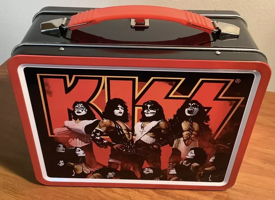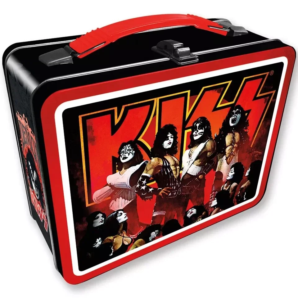 KISS fans get ready to rock and roll with this KISS Gen 2 Fun Box Tin Tote featuring the bands self titled album cover. The fun box tin tote measures approximately 8 1/2-inches x 6 1/2-inches x 4-inches and features an embossed front cover and includes a sturdy latch and handle. It's not designed to carry food but it can hold just about anything else! Ages 14 & up
