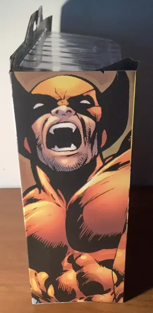 Articulated action figure of Wolverine in his brown X-Men costume.