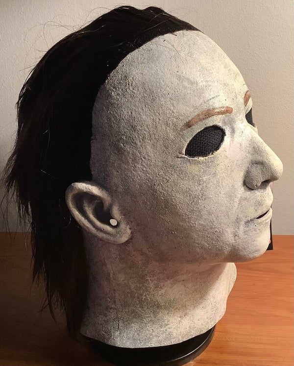 Whether it's spooky season or your Halloween collection needs a center piece, this officially licensed Halloween 5: The Revenge of Michael Myers Mask is just what you need! This amazing latex replica of the mask worn by Michael Myers seen in Halloween 5: The Revenge of Michael Myers, was sculpted based on numerous screen shots and stills from the film. Everything you see on the screen is represented in the mask, including the nose appliance. Order this chilling mask today and celebrate the Revenge of Michael Myers! Ages 18 and up [17]