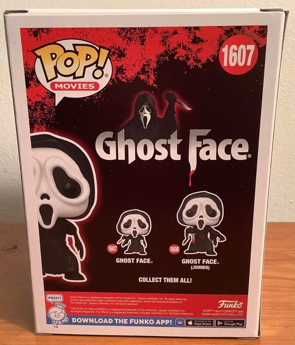 Carve out some space for a killer addition to your horror collection! This terrifying Ghost Face Funko Pop! is ready to take a stab at joining your Scream lineup. This Ghost Face with Knife Funko Pop! Vinyl Figure #1607 measures approximately 3 3/4-inches tall and comes packaged in a window display box. Scream with excitement or tears when you add Ghost Face to your Funko Pop! collection! For ages 3 and up.