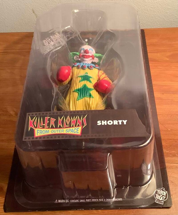 Expand your horror collection with an icon from the Scream Greats Sries 1 Collection! This Killer Klowns From Outer Space Shorty Scream Greats 8-inch Action Figure includes 1x 8-inch scale Shorty Klown figure. It comes packaged on a backer card with a plastic blister. This frightfully fun action figure makes a great addition to any horror fan's collection! Ages 17 and up.